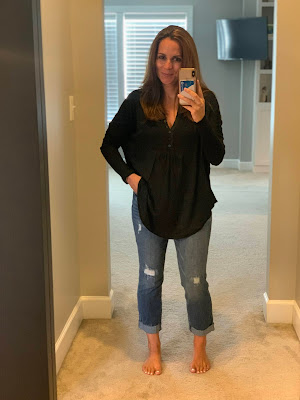 I really love this look and I wanted it to work for me but everything was too big. The top was swimming on me...way too big (I'm in an XS). It's super cute and I definitely recommend it but you NEED to size down. The jeans are FABULOUS but they are a bit big so I'm returning and hoping that the next size down eventually becomes available. Highly recommend snagging them but remember to size down.